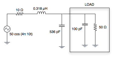 Calculate the power transferred when Vi(t) = 50 cos (4π 10t) in the attached figure.