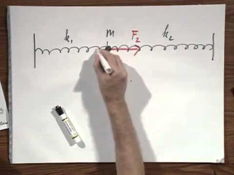 Amplitude is conserved in simple harmonic motion (SHM) despite varying forces on either side due to the net force being a function of displacement, represented as F=(K1+K2)X. When displaced, the mass experiences a restoring force that is symmetrical, leading to repeated velocity at the equilibrium point. This symmetry in force contributes to the oscillatory nature of SHM, but the consistent speed at equilibrium is primarily due to the conservation of energy. The discussion clarifies that the forces acting on the mass can be effectively modeled as a single spring with an equivalent spring constant. Overall, the principles of energy conservation and symmetrical forces are key to understanding SHM.
