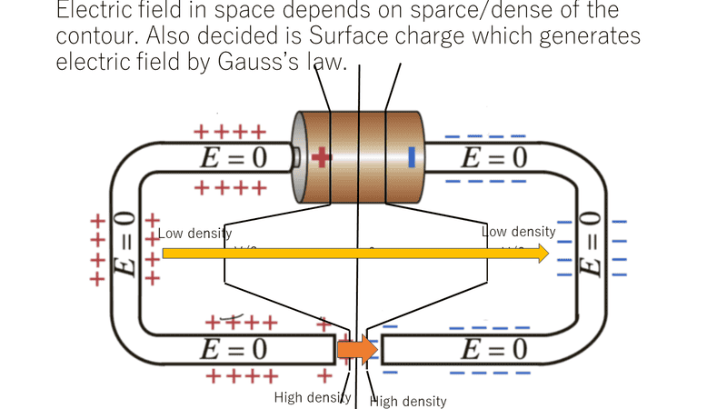 - Questions are raised about the reasons for the decrease in surface charge density as one moves away from the battery terminals.
