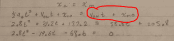 Here is my attempt at the solution but I got the wrong answer. The right answer is t=16.6s. I know from the book (this is an example problem) that the motorcycle reaches its max speed at t=7.0s. But I don’t know where I made the mistake that is causing me to get the wrong answer afterwords.