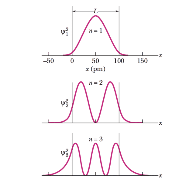 For infinite potential well there are nodes at the walls and λ = 2L/n as in the case of a string with two clamps.