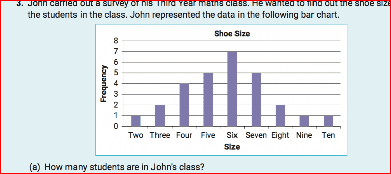 The discussion revolves around determining the total number of students in a class based on shoe sizes and their frequencies. Participants are comparing their calculations with a provided answer from a book, which states there are 28 students.
