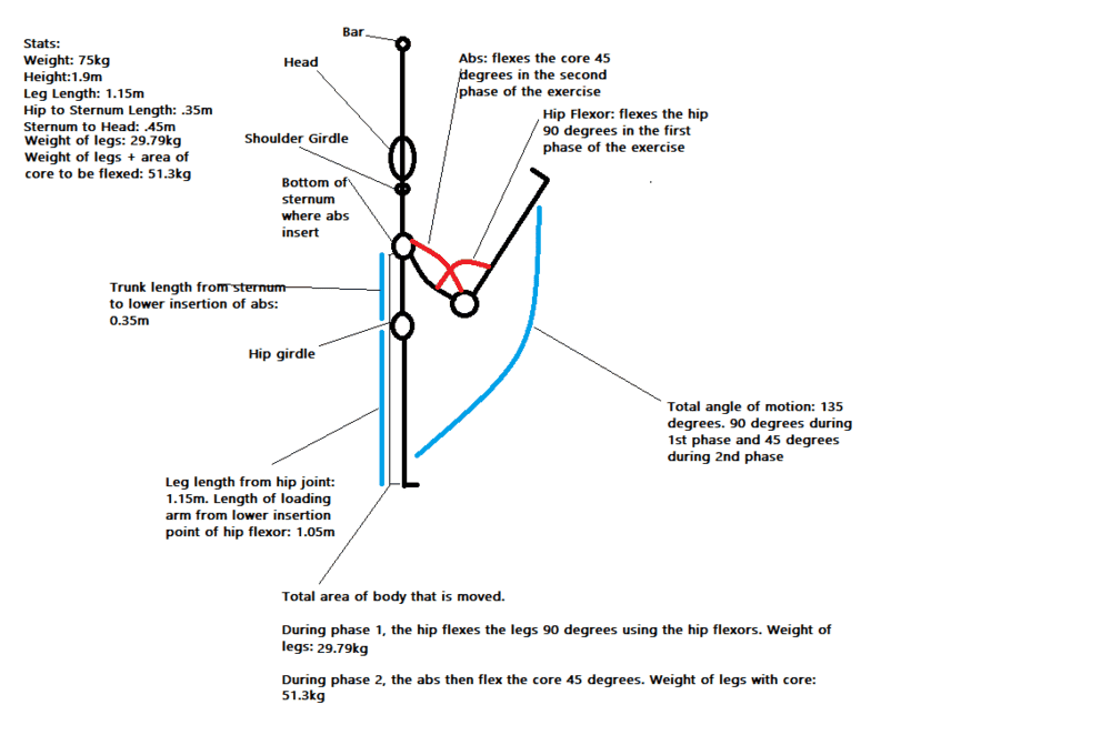 As described above, in short I am trying to work out how much force is exerted by the abs during a single rep of the hanging leg raise (best search online to know what I mean), for the tempo of 1.5s up and .5 seconds down.