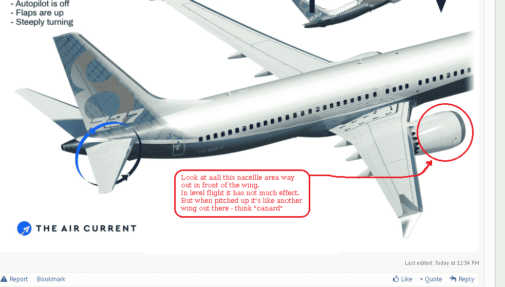 So Boeing came up with MCAS to undo the positive feedback from nacelle lift and prevent that scenario.