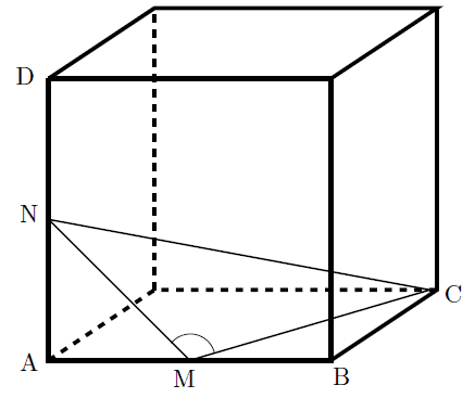I received an excellent question about significant figures when there is no actual numerical data given. In the figure below, we have a cube circumscribing a triangle and the task is to find the angle at M. N and M are midpoints of the cube's side.