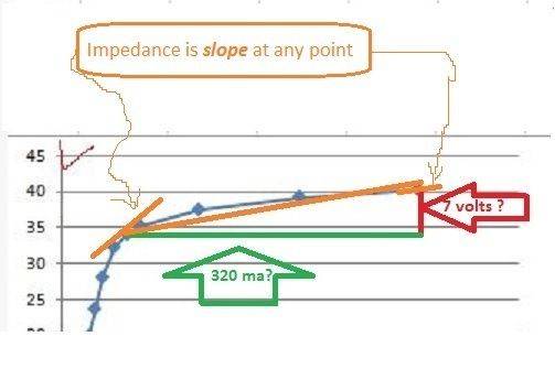 I'm still not sold on if we need a better way to get the saturated impedance than the same ΔI as at zero control DC. Because it was so vague about how far the DC shifted out, I just took the difference between the last two data points for ΔV on the load. And I don't think it should be the load, I'd have thought the volts on the Amp itself.