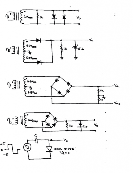 5. The positive edge can go through the diode but the negative one cannot. What would the waveform look like?
