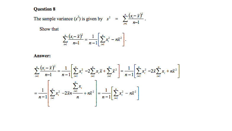 - Study the derivation of the sample variance formula in detail