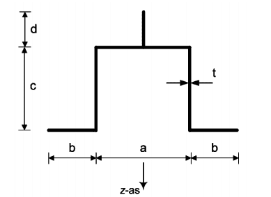 The sizes are: a = 250mm, b = 100mm, c = 250mm, d = 150mm and t = 10mm.