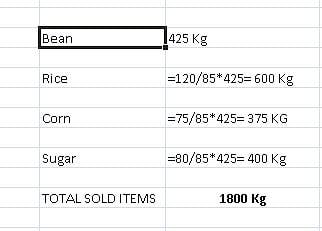 - There is confusion regarding the calculated amount of sugar, with one participant noting that the found value exceeds the weight of beans, prompting a reevaluation of the calculation.