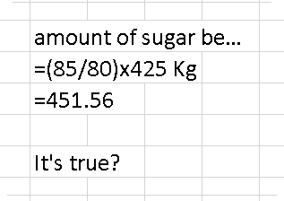 - A subsequent participant proposes a corrected calculation for sugar based on the ratio, suggesting that 400 kg is the correct amount.