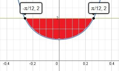 Sketch the region bounded by the line y = 2 and the graph of $$y = sec^2(3x)$$ for $$ \frac{-\pi}{6} < x < \frac{\pi}{6}$$