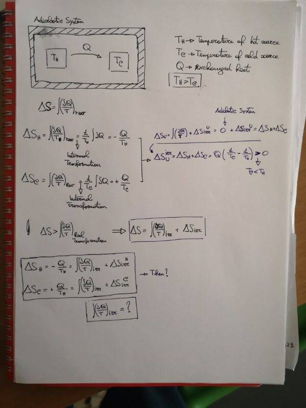 Now I start to have some problems. Let's consider the equation (1), that integral can be calculated also on the real (irreversible) transformation which system follows and we have that: