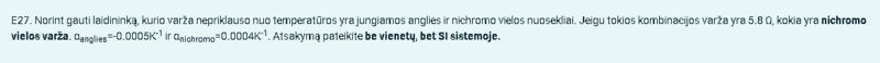 The discussion centers on calculating the resistance of nichrome wire in a series circuit with graphite, where the total resistance is 5.8Ω and is independent of temperature. The temperature coefficients of resistance are given as αcoal = -0.0005K⁻¹ for graphite and αnichrome = 0.0004K⁻¹ for nichrome. The key equation to use is R = Rref(1 + α(T - Tref)), but since the resistance is temperature-independent, the focus is on the relationship between the resistances of the two materials. The problem can be solved by establishing equations for R_G and R_N based on the provided information.