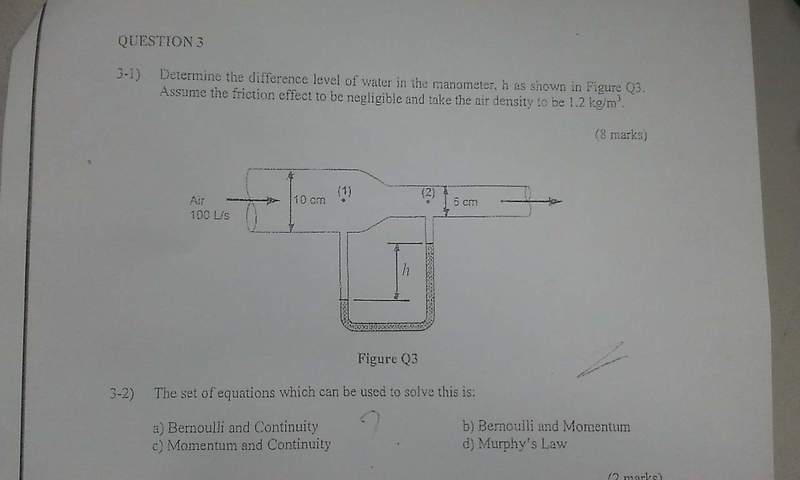 The discussion centers on calculating the height in a manometer using Bernoulli's principle and the continuity equation. The user, Zainul, seeks assistance but does not provide any preliminary work or calculations. Forum members emphasize the importance of demonstrating effort in problem-solving and suggest applying the relevant fluid dynamics equations to derive the solution.