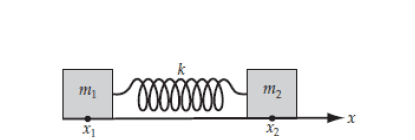 connected by a spring whose force constant is 𝑘 = 0.5 N/m. Find the frequency of the