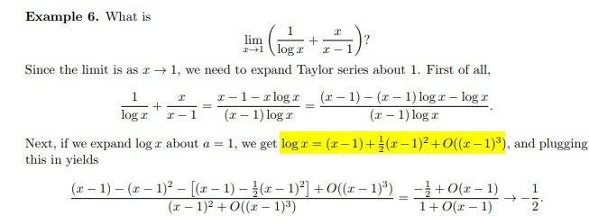 I was trying to solve the following problem myself but couldn't figure out how the given Taylor series for log(x) is found.