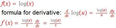 My calculator gives it as d{log(x)}/dx=1/In(x)*x.