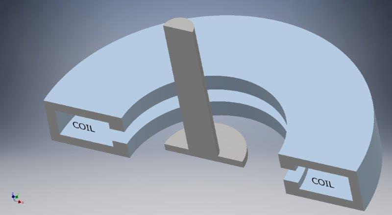 I have a disk attached to the end of a shaft and the shaft/disk assembly can move radially (via a spring loaded mechanism). This shaft/disk fits within the inside diameter of a donut shaped electromagnet consisting of a coil surrounded by an iron armature. The electromagnet is stationary.
