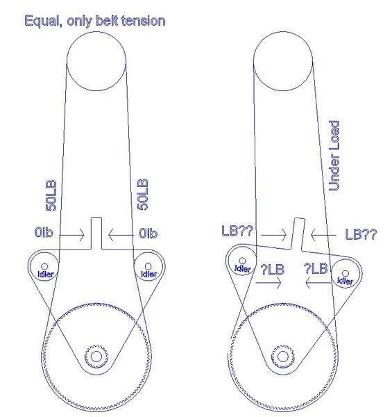 Participants express varying opinions on the best methods for calculating forces on the idler, with some advocating for theoretical calculations and others suggesting empirical measurements. There is no consensus on a definitive approach or formula for determining the loads involved.