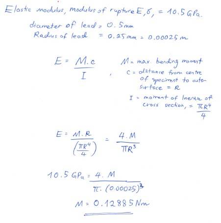 The Setup of the Experiment can be seen in the Picture i attached. Now the Problem i have is to find the correct formula on how to find the breaking force of lead, where the elastic modulus and density are defined.