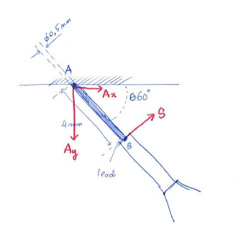 My attempt is to use the formula of Modulus of rupture, E = M.y/I and get the value for Bending Moment. For the sake of example, i am using 0.5 mm Diameter, 60° angle, 4 mm lead length.