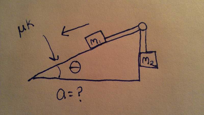 There is no actual numbers given. We are supposed to be solving for acceleration and I tried but can't find an answer. I'll show you my work and please tell me what I did wrong