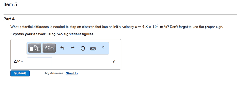 The discussion revolves around finding the change in electric potential (ΔV) given a velocity of 4.8×105 m/s. Participants are exploring how velocity relates to electric potential in the context of charged particles and energy concepts.