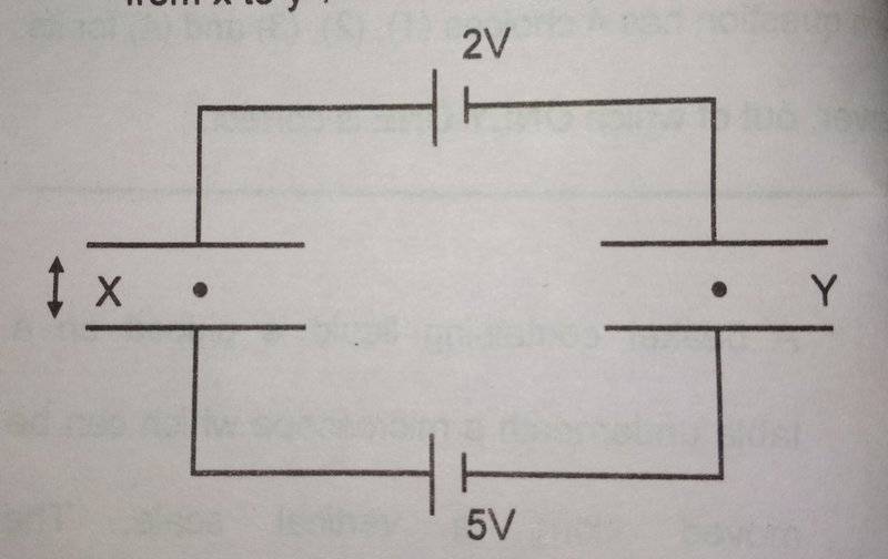 Two batteries are connected to two identical capacitors X and Y.Initially all the plates of the capacitors are uncharged.How to find charge on each Capacitor in the given diagram.Let the Capacitance of Capacitor be C.