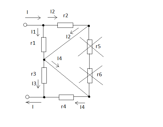 I tried to solve this problem, but I obtained wrong answer. Initially, I suppose that current will not flow to r5 and r6, since there is a wire without any resistor, and therefore the current will flow to where there is no resistance. Thus I consider that r5 and r6 are absent (see figure2 and figure3). After that, equivalent scheme looks like in figure4.