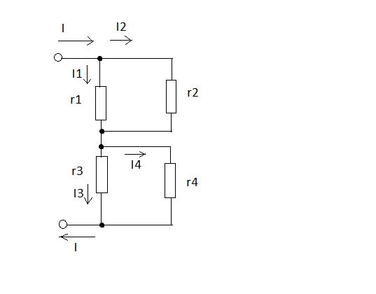 r1 and r2 are connected in parallel, and r3 and r4 are connected in parallel. Total resistance: