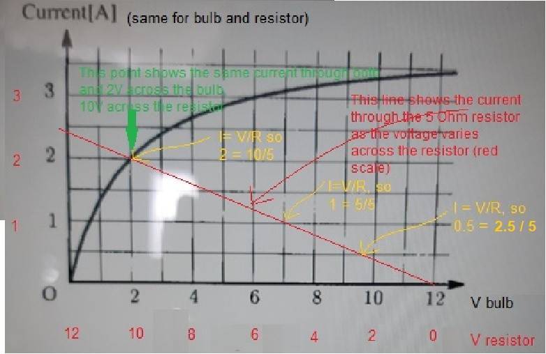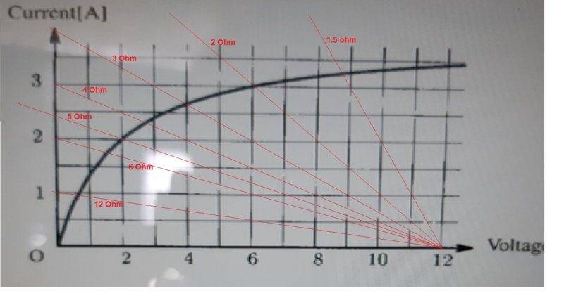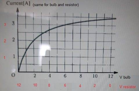 When 12 V, the current accros the bulb is 3.5 A
