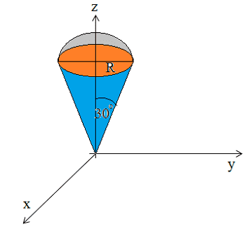 - One participant provides a detailed calculation for the height of the cone based on the angle \( \theta \), concluding that \( h = \sqrt{3} R \) when \( \tan(30^\circ) = \frac{R}{h} \).