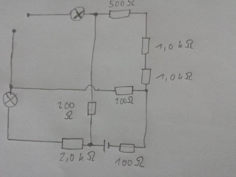 The discussion revolves around an electric circuit involving two lamps and resistors. The original poster expresses uncertainty about the circuit's construction and whether both lamps will shine equally brightly. They reference Kirchhoff's and Ohm's laws as relevant equations.