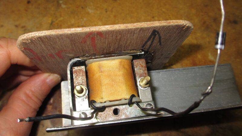 I happen to have a 240 Volt transformer that vibrates (see attachment). It has a right-angled metal arm that is attached externally, about 3mm thick, separate from the core but obviously is part of the magnetic circuit. When you apply power, the arm moves 1-2mm at 50 Hz. The device I got it from had a diode that could also be put in circuit with a switch, thus operating the thing at 25Hz -- and a larger, much noiser vibration.