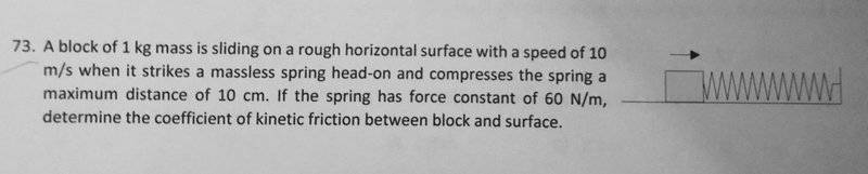 m = 1 kg vi = 10 m/s vf = 0 m/s xi = 0 m xf = 0.1 m d = 0.1 m k=60 N/m μκ=?