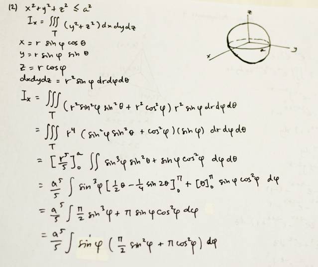 Assuming correctness up to the next to last line, you can look up the integral of (sinx)**3. The integral of sinx(cosx)**2 is like a**u du because you have du which is sinx * dx.