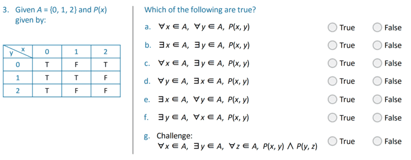 So now I try to look at all ##y## (that are already paired with some ##x##) and try to find some ##z## for each of the ##y## that would cause ##p(z,y)## to always be false. However, I'm not sure where and how to apply the ##z## since it's not defined in the table.