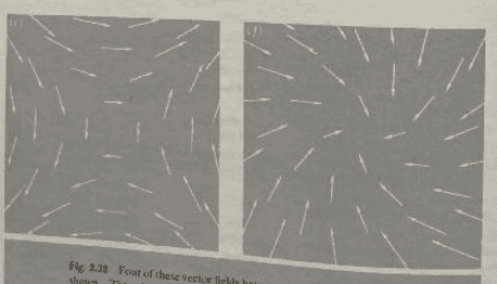 These are the vector fields. I really have no idea how to see if there is a curl or not. I have been looking at the rotation of the vector fields. The fields d and e seem to have some rotation or circular paths, but I read online that curl is not about the rotation of the vector field itself, but more about the rotation of points in the vector field. Can someone help me understand how to determine if there is a curl when one are given a picture of a vector field like the ones below?