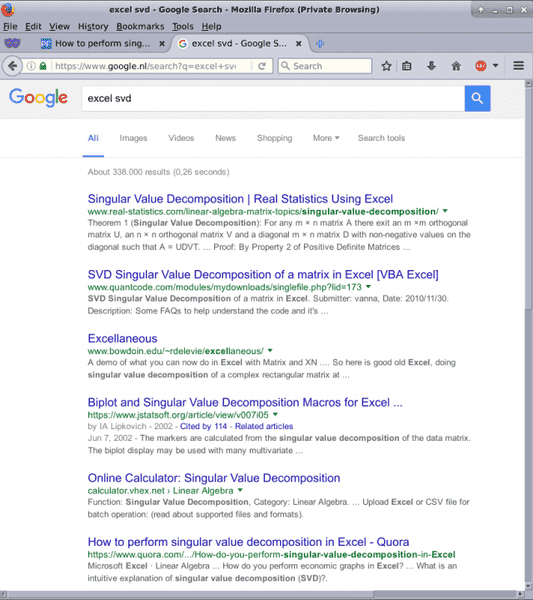 I have a matrix of data and I want to do SVD using excel, is it possible?
