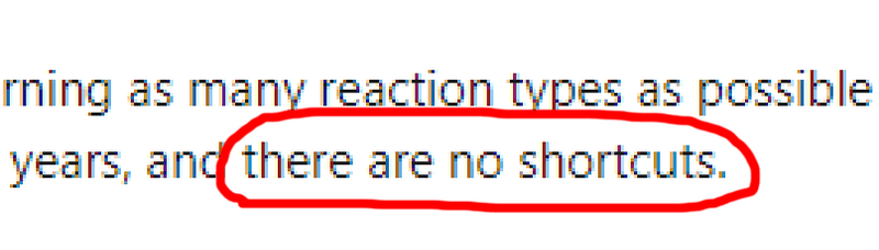 - One participant mentions the importance of learning various reaction types and developing intuition over time, acknowledging that there are no shortcuts in mastering chemistry.