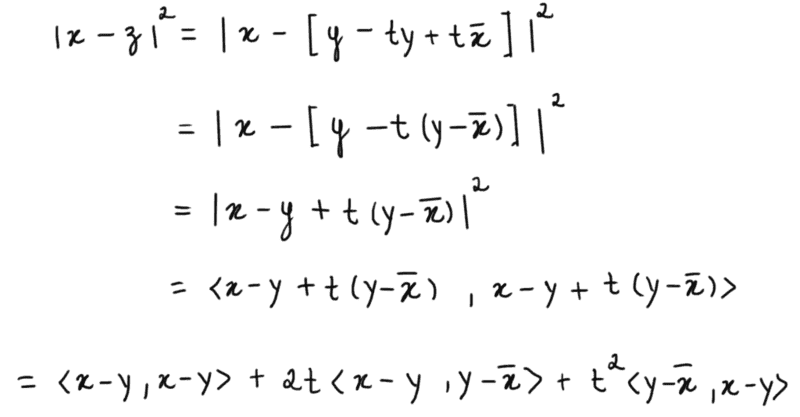 Then I used the fact that ##C## is a convex set, so ##z=(1-t)y+t\overline{x} \in C##, where ##t \in [0,1]##.