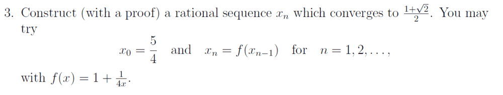 - Construct (with a proof) a rational sequence xn that converges 1+sqrt(2)/2