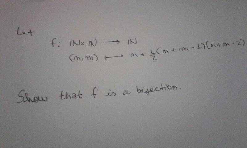 This discussion focuses on proving that a function of two variables, defined as f(m, n), is a surjection. The key requirement is to demonstrate that for any positive integer p, there exist positive integers m and n such that the equation 1/2(m+n−2)(m+n−1)+n=p holds true. Participants emphasize the importance of visualizing the function through sketches to clarify its behavior and facilitate finding explicit values for m and n corresponding to each p. The discussion also touches on the definitions of surjection and injection in the context of functions with two variables.