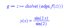 The discussion focuses on extracting the solution of a differential equation (DE) in Maple without the "y(x)=" notation. The user seeks to obtain the expression sin(pi x /2) directly for use in an array. The solution involves using the assign command after solving the DE with dsolve, specifically for the second-order ODE defined as diff(y(x), x, x) = -y(x) with initial conditions y(0) = 1 and D(y)(0) = 0. This method allows for the evaluation and plotting of the solution without the function notation.