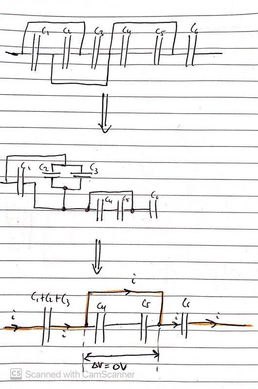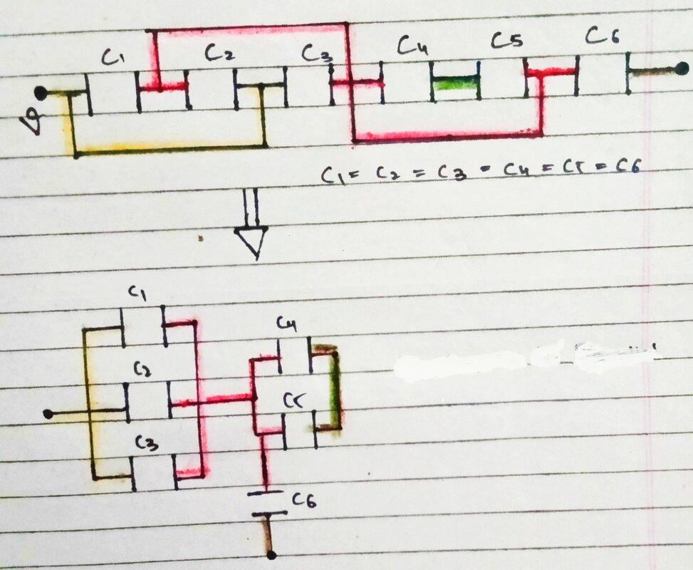 - Participants discuss identifying parallel components based on shared nodes and explore the concept of potential difference across capacitors. There are inquiries about the method of same potential and how to further simplify the circuit after identifying parallel capacitors.