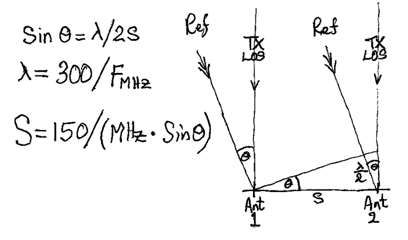 3. Distance between 2 RX antennas : d1 = 10 cm (Software Define Radio with dual antenna)
