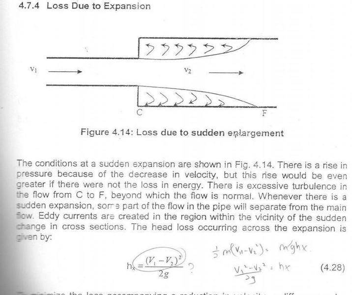 however , in this link , the hx is [ (V1- V2)^2] / 2g ... which one is correct ? [ [(V1)^2] - [(V2)^2 ] ] / 2g or [ (V1- V2)^2] / 2g ??BvU said: