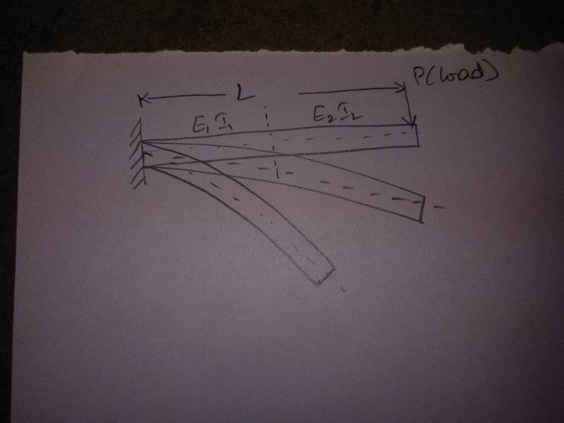 As shown below figure. my cantilever is of two different rigidity modulus. At the end point of the beam, load is applied. As the load increase the beam tends deflects more, where θ value will be from 1° to 80°. i have to use finite element method to solve the problem.Nidum said:Please post a clear drawing showing all the details of the problem .