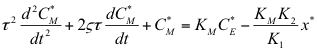 The discussion focuses on solving a second-order ordinary differential equation (ODE) in control systems, specifically with parameters Km = 0.5, K2 = 0.03, K1 = 0.05, and x* = 49. The auxiliary equation and general solution can be derived by assuming C_m = e^(kt) and substituting the given parameters. The values of τ (time constant) and ζ (damping ratio) are also critical in determining the system's behavior, and it is recommended to substitute parameter values for clarity in the equation.